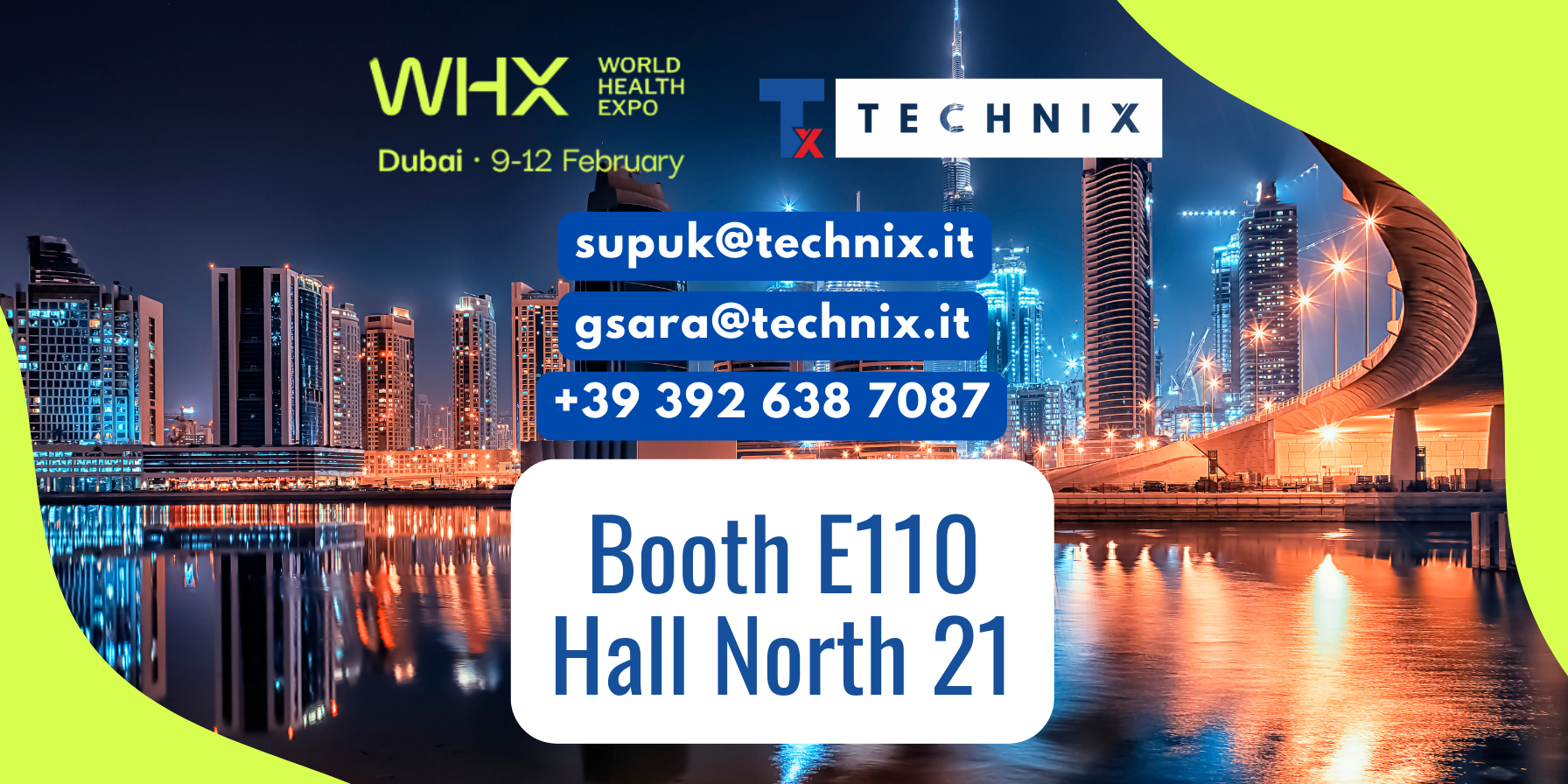 Technix will be attending WHX Dubai 2026 in Dubai (EAU), from 9 to 12 February 2026. Our Team will be glad to welcome you at Booth E110 – Hall North 21 in Dubai Exhibition Centre. Contact us to fix a meeting or come and visit us.